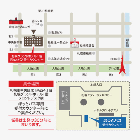 札幌市中央区北1条西4丁目札幌グランドホテル1階 フロントデスク横