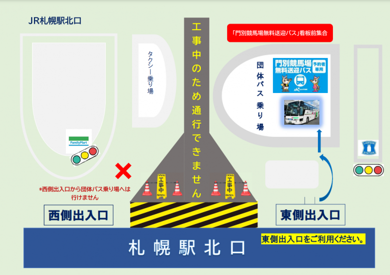 ■バス乗車場所:JR札幌駅北口 団体バス乗り場「門別競馬場行き無料送迎バス」12:15集合
